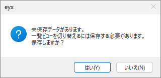 現在表示している一覧リストが未保存の場合は、以下のメッセージが表示されます。
