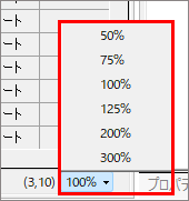リスト編集ウィンドウの右下にある拡大・縮小メニューから拡大・縮小率を選択できます。