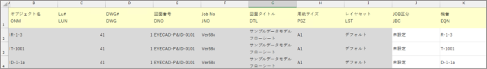 Luフォルダ内のP&ID図面で使用している機器や機器付属品などすべてのオブジェクトデータを、それぞれリストにして一覧表示し、Luに保存したり、Excelにエクスポートしたりすることができます。
