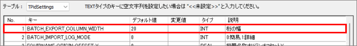- 出力ファイルの列幅は、プロファイルキー[BATCH_EXPORT_COLUMN_WIDTH]で設定できます。