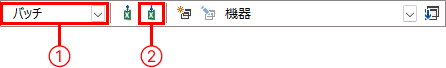 ツールバーのリストタイプで[バッチ](①)を選択し、インポートアイコン(②)をクリックします。
