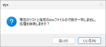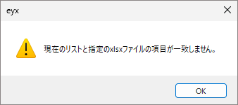 以下のメッセージが表示された場合は、項目やExcelの内容を確認してください。
