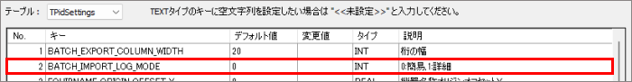 - プロファイルキー[BATCH_IMPORT_LOG_MODE]が[0:簡易]モードの場合、「インポート対象外」はログに出力されません。[1:詳細]モードの場合は、全ての項目を出力します。