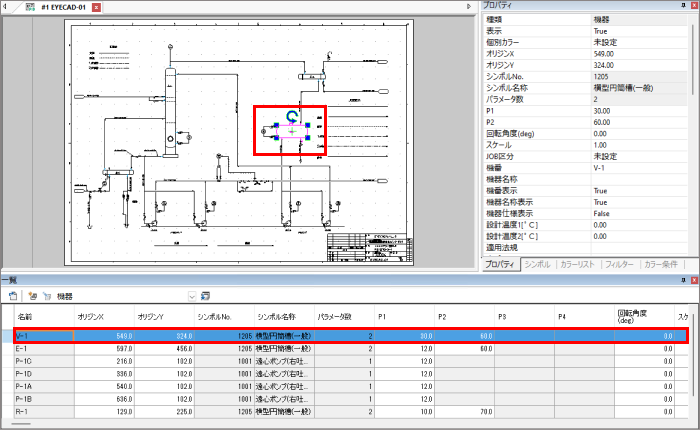 図面上で、機器/配管ライン/計装品/配管付属品(タグNo.あり)/ノズルを選択します。
