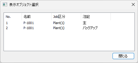 表示対象のオブジェクトが複数見つかった場合、3Dモデリングプログラム上に以下のようなメッセージが表示されます。表示項目は対象オブジェクトによって異なります。
